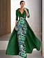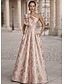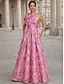 А-силуэт В пол Вечернее платье Элегантный стиль С цветами С короткими рукавами V-образный вырез Свадьба Официальные Жаккард с Цветочный рисунок Плиссировка