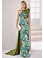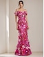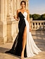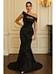 Русалка В пол Выпускные платья Вечернее платье С пышной юбкой Торжественное платье Элегантный стиль Цветовые блоки С короткими рукавами На одно плечо Свадьба Официальные
