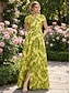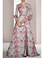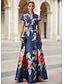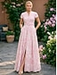 А-силуэт В пол Вечернее платье Элегантный стиль Винтаж С цветами С короткими рукавами С открытыми плечами Вечеринка в саду Свадьба Карман Жаккард Вырез с драпировкой на спине с 3D Цветы