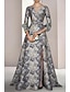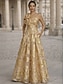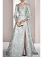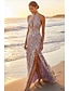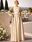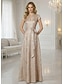 А-силуэт В пол Вечернее платье С пышной юбкой Торжественное платье Элегантный стиль Высокий раскол Длинный рукав V-образный вырез Рождество Официальные Платье для матери невесты цвета шампанского