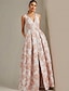 А-силуэт В пол Вечернее платье Элегантный стиль Винтаж С цветами Без рукавов V-образный вырез Вечеринка в саду Свадьба Карман Жаккард с Цветочный рисунок Pазрез Карман