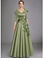 А-силуэт В пол Бальное платье с накидкой Вечернее платье С пышной юбкой Элегантный стиль Винтаж С цветами С короткими рукавами V-образный вырез Свадьба Официальные Карман Сатин с