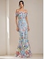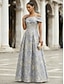 А-силуэт В пол Вечернее платье Бальное платье с верхней юбкой Торжественное платье Элегантный стиль Стиль знаменитостей Шелковистость Без рукавов С открытыми плечами Вечеринка в саду Свадьба Жаккард с