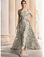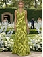 А-силуэт В пол Цветочное платье Вечернее платье Элегантный стиль Винтаж С цветами Без рукавов На одно плечо Вечеринка в саду Свадьба Карман Сатин Жаккард с Цветочный рисунок Вышитый цветок Бант(ы)