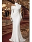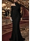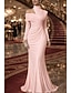 Русалка В пол Вечернее платье Элегантный стиль Вечерняя талия в стиле ампир Длинный рукав Вырез под горло Для вечеринок Свадьба Стретч-сатин с Плиссировка Один цвет