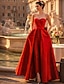 Футляр Ниже колена коктейльные платья Вечернее платье Бальное платье с верхней юбкой Торжественное платье Элегантный стиль Без рукавов С открытыми плечами Вечеринка в саду Свадьба Сатин с
