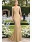 Футляр В пол Вышивка бисером Вечернее платье Платье матери невесты Выпускные платья Вечернее платье С пышной юбкой Торжественное платье Элегантный стиль Винтаж Блестящая С короткими рукавами