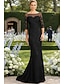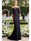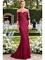 Русалка Труба Мать невесты Платье Элегантное Простое Минималистское V-образное декольте Портретный воротник Длина до пола Эластичный сатин Половинный рукав с рюшами и разрезом