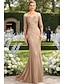 Русалка В пол Вечернее платье Элегантный стиль Шелковистость Длинный рукав Вырез под горло Свадьба Официальные Платье для матери невесты цвета шампанского Стретч-сатин с Блеск Плиссировка
