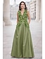 А-силуэт В пол Вечернее платье Элегантный стиль Стиль знаменитостей Принцесса Без рукавов V-образный вырез Вечеринка в саду Свадьба Карман Сатин с Вышитый цветок Плиссировка Вышивка