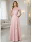 А-силуэт В пол Вышивка бисером Вечернее платье Платье матери невесты Вечернее платье Бальное платье с верхней юбкой Торжественное платье Элегантный стиль Шелковистость Рукав до локтя