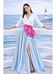 А-силуэт В пол Вечернее платье С пышной юбкой Торжественное платье Элегантный стиль Высокий раскол Рукав 3/4 V-образный вырез Свадьба Официальные Пояс/кушак Сатин с Бант(ы) Pазрез