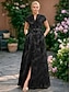 Футляр В пол Вышивка бисером Вечернее платье Платье матери невесты Вечернее платье Бальное платье с верхней юбкой Торжественное платье Элегантный стиль Винтаж Блестящая Рукав до локтя Лацкан