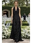 А-силуэт Футляр В пол Вечернее платье Элегантный стиль С цветами Шелковистость Без рукавов Вырез-хомут Вечеринка в саду Свадьба Карман Сатин Жаккард С открытой спиной с С кисточками