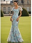 Русалка В пол Выпускные платья Вечернее платье С пышной юбкой Торжественное платье Элегантный стиль Блестящая Стиль знаменитостей Без рукавов С открытыми плечами Вечеринка в саду Свадьба Кружева с