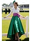 С пышной юбкой До щиколотки Выпускные платья Вечернее платье С пышной юбкой Торжественное платье Элегантный стиль 1950-е года Цветовые блоки Без рукавов Вырез под горло Выпускной Свадебный гость Сатин