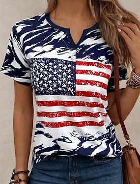 День независимости США Жен. Футболка С принтом Цветочный принт Графика Флаг Стиль Классика На каждый день С короткими рукавами Вырез под горло Круглый вырез Обычные топы Повседневные