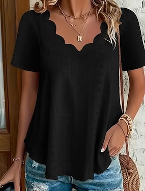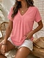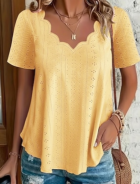 Жен. Ушко сверху Футболка Pointelle Футболка Футболки Текстура Элегантный стиль Стиль Классика С короткими рукавами V-образный вырез Обычные топы Повседневные Пляж Белый Желтый Розовый Лето