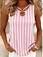 Жен. Ушко сверху Туника Безрукавка ушко Графика Геометрический принт Полоски Стиль Классика Без рукавов Асимметричный вырез Длинные топы Повседневные Розовый Лето Весна
