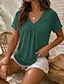 Жен. Футболка Футболки Рюши Сплошной цвет Графика Полотняное плетение Элегантный стиль Винтаж Мода С короткими рукавами V-образный вырез Обычные топы Повседневные Спорт выходные