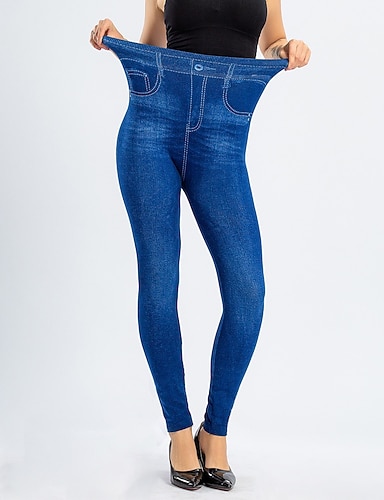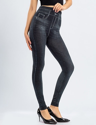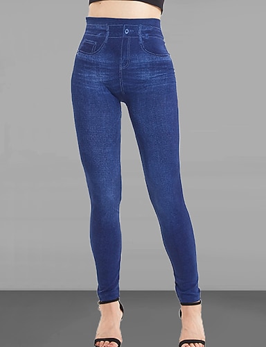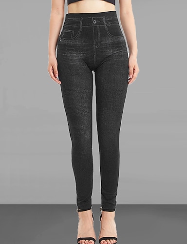 Жен. Джинсы Брюки Джеггинсы Уютные леггинсы Мода Уличный стиль Полная длина Завышенная Полотняное плетение Карман Эластичная талия Воздухопроницаемость На открытом воздухе Удобный Слабоэластичная