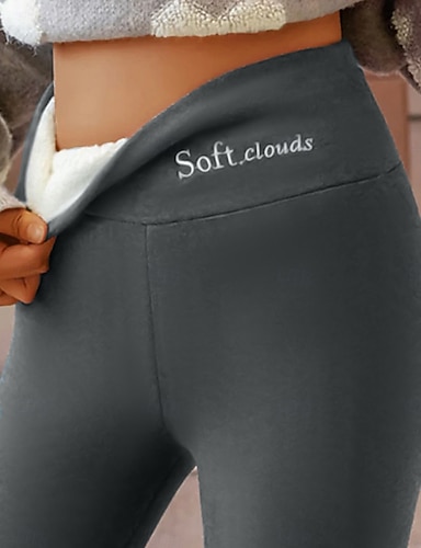 Жен. леггинсы на флисовой подкладке Флисовые штаны Леггинсы Мода Уличный стиль На каждый день Полная длина Завышенная Полотняное плетение Высокий вырез удобный Мягкий Удобный Эластичная