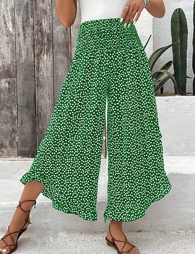 Жен. Широкие Чино Мода Уличный стиль Полная длина Завышенная Горошек Карман Эластичный пояс С принтом удобный Мягкий Удобный Слабоэластичная на открытом воздухе Для улицы Черный Красный Зеленый