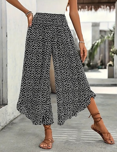 Жен. Широкие Брюки в стиле бохо Чино Skort Отпуск Уличный стиль На каждый день По щиколотку Нормальная Графика Кулиска Рисунок удобный Комфорт Дышащий Слабоэластичная