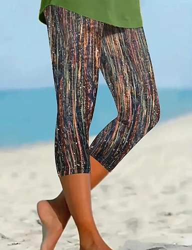 Жен. Брюки-капри Леггинсы Отпуск Мода Уличный стиль Капри Завышенная Сплошной цвет Рисунок Сохраняет тепло Мягкий Дышащий Эластичная Повседневные на открытом воздухе Отпуск
