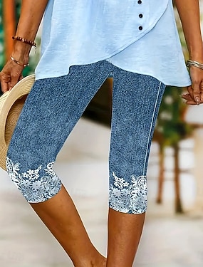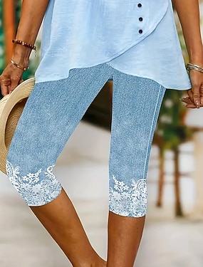 Леггинсы для женщин капри высокая эластичность отпуск винтажная мода длина до икры средняя талия цветочный графический принт воздухопроницаемые мягкие отпуск повседневные голубая яичная скорлупа