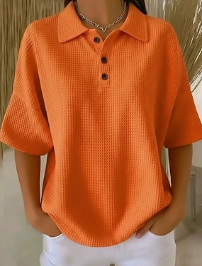 Жен. Оверсайз Футболка Футболки Топы в вафельном вязании Кнопка спереди Полотняное плетение Мода Стиль Классика С короткими рукавами Вырез под горло Хенли Обычные топы Повседневные На выход выходные