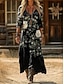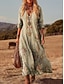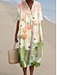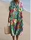 Жен. Платье средней длины Платье прямого кроя Отпуск На каждый день Богемный Повседневные Летнее платье Весеннее платье Стандартный Цветочный принт Графика Рукав 3/4 Вырез под горло V-образный вырез