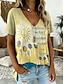 Жен. Футболка С принтом Цветочный принт Графика Растения Винтаж Стиль Классика С короткими рукавами V-образный вырез Длинные топы Повседневные выходные Синий Желтый Лето Весна