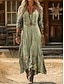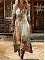 Женское миди-платье с V-образным вырезом и длинными рукавами легкий свободный крой А-силуэт повседневное платье богемный стиль для походов графический геометрическая полоска длинные рукава V-образный