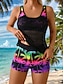 Жен. Купальники Танкини 2 шт. Шорты купальник Утягивание живота Завышенная Тонкие Открытая спина Отпуск Одежда для пляжа Цветочный принт Графика Совок шеи Без рукавов Купальники