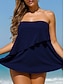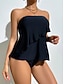 Жен. Купальники Танкини 2 шт. Смелые купальник Утягивание живота Завышенная Тонкие Открытая спина Отпуск Одежда для пляжа Сплошной цвет Без бретелей Без рукавов Купальники