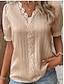 Жен. Блуза Кружевные топы Кружева Пэчворк Сплошной цвет Стиль Классический На каждый день С короткими рукавами V-образный вырез Обычные топы Повседневные Белый Лиловый Пурпурный Золотой Зеленый