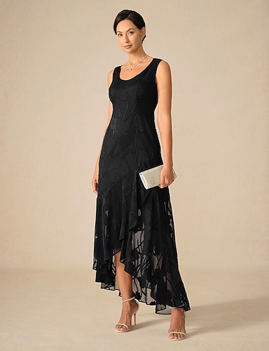 Жен. Длинное платье Платье с рюшами Элегантный стиль Для вечеринок Свадьба Свадебный гость Цветочный принт Без рукавов U-образный вырез Черный