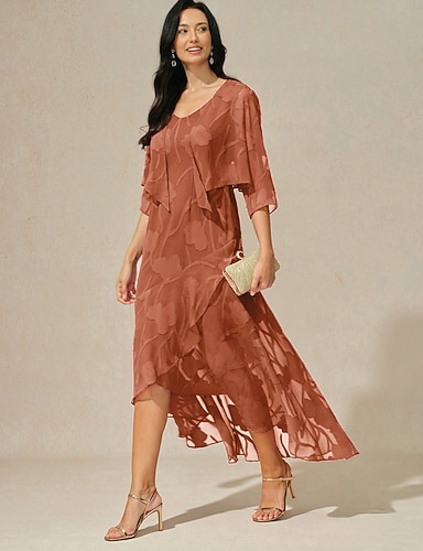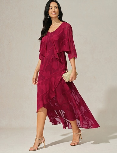 Платье для матери невесты из синего шифона, повседневное, с круглыми рукавами, из двух частей, миди, платье, которое произведет впечатление в 2024 году