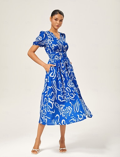 женское свадебное платье для гостей элегантное платье макси с принтом тай-дай с коротким рукавом и v-образным вырезом свободный крой повседневное белое синее фиолетовое летнее платье