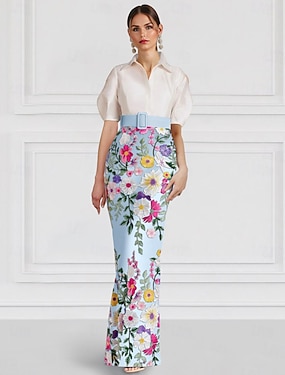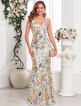 Футляр В пол Вышивка бисером Вечернее платье Платье матери невесты Выпускные платья Вечернее платье С пышной юбкой Торжественное платье Элегантный стиль Винтаж Блестящая С короткими рукавами