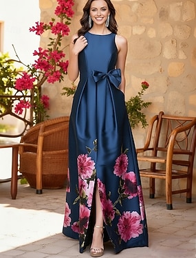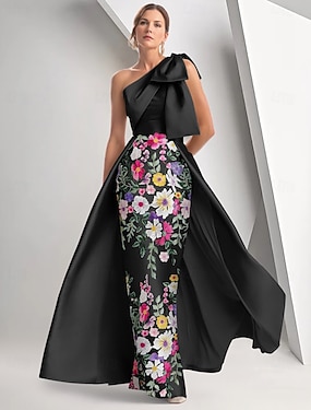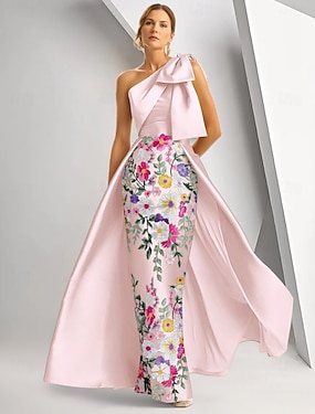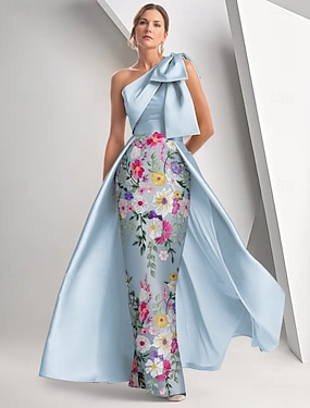 А-силуэт В пол Вышивка бисером Вечернее платье Платье матери невесты Вечернее платье Элегантный стиль Винтаж Блестящая Без рукавов На одно плечо Свадьба Официальные Сатин с Бант(ы) Pазрез