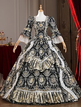 Платье Рококо Барроко Викторианский стиль В пол Платья Костюм для вечеринки Маскарад Большие размеры Свадьба Пэчворк Цветы С пышной юбкой Маскарадный костюм Жен. Свадьба Для вечеринок Хэллоуин