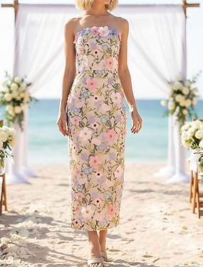 Футляр До колена Платье для вечеринки Коктейльные платья Свадебное платье для гостей Платье для матери невесты Рукав до локтя Шейная лодка Элегантный стиль Большие размеры Смотреть сквозь