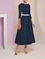 Платья Платье Костюм Ниже колена Свадебное платье для гостей Платье для матери невесты Рукав 3/4 Круглый вырез Элегантный стиль Винтаж Официальные Свадебный гость Эластичная ткань с