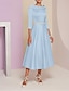 А-силуэт До колена Платье для вечеринки Коктейльные платья Свадебное платье для гостей Платье для матери невесты Рукав до локтя Круглый вырез Элегантный стиль Свадебный гость Свадебные прием Сатин с
