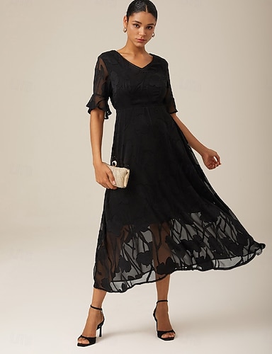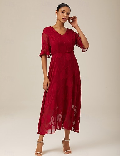 Жен. Длинное платье Коктейльные платья Свадебное платье для гостей Полуформальное платье Платье A-силуэта Элегантный стиль Для офиса День рождения Рукава-крылышки