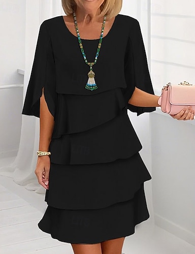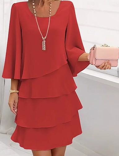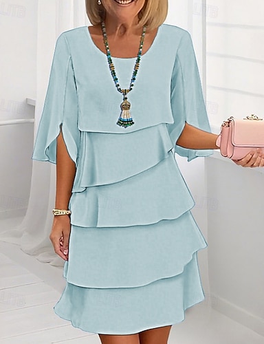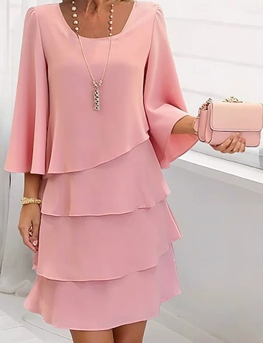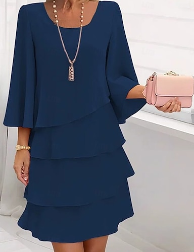 Жен. Мини-платье Коктейльные платья Свадебное платье для гостей Шифоновые платья Многоярусное платье Элегантный стиль Для вечеринок Свидание На выход Стандартный Чистый цвет С короткими рукавами