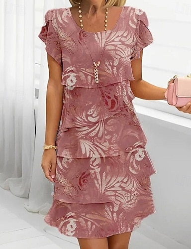 Жен. Платье средней длины Платье с рюшами Элегантный стиль Повседневные Отпуск Свадебный гость Кружева Многослойный Стандартный Цветочный принт Без рукавов С короткими рукавами U-образный вырез
