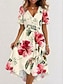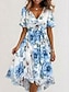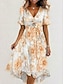 Жен. Платье средней длины Платье A-силуэта Элегантный стиль Рукава-крылышки Повседневные Отпуск Свадебный гость Шнуровка Оборки Стандартный Цветочный принт С короткими рукавами V-образный вырез